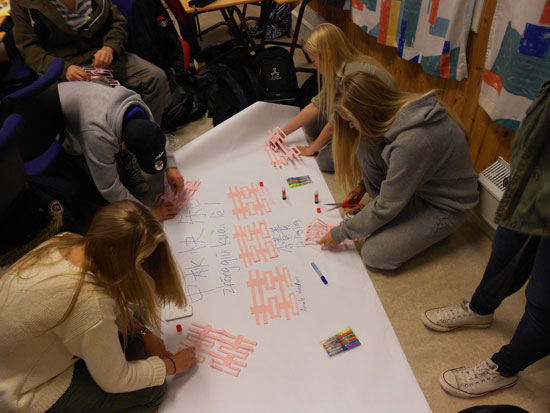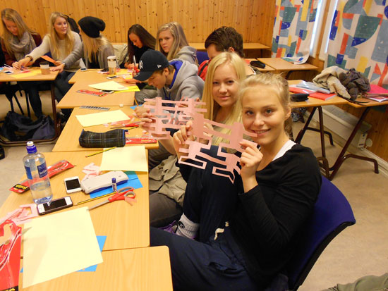 最后,全体把剪好的喜字贴在一起做成了一幅海报,并写上自己的名字。24名师生一起度过了一个愉快而有意义的中秋佳节。希望奥勒松高中的中文课也像同学们完成的那幅海报一样,在未来,带着满满的“喜”悦和快乐,把中国语言和文化的种子播散在这群可爱的挪威年轻人心间,为挪威和中国的文化交流架起友谊的桥梁。