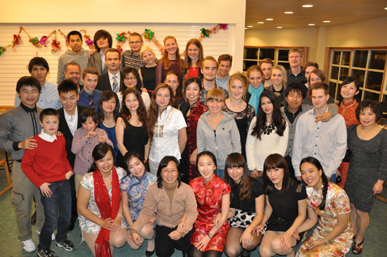 2012年10月2日晚,在北挪威北极圈内的诺德兰大学的学生活动中心,卑尔根博德教学点诺德兰大学汉语班师生们与中国留学生、华人华侨正欢聚一堂,共度中秋佳节。