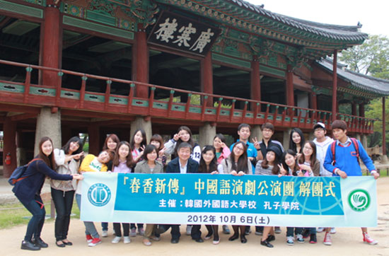 10月6日,韩国外国语大学孔子学院《春香新传》中文话剧团成员和孔子学院的老师们一起来到了剧中女主角春香的故乡——南原(位于韩国全罗北道),并在这里成功举办了话剧团的解团仪式以及孔子学院第二届岗中培训。
