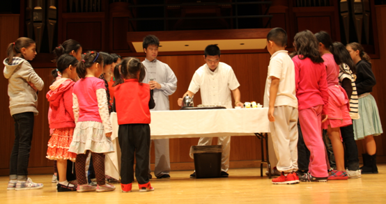 布法罗孔子学院为每位来宾都准备了精美的月饼、中国文化宣传资料和演出的节目单。汉办教师和志愿者们穿着漂亮的旗袍向来宾们介绍了月饼的来历、中秋节对中国家庭的重要性以及相关的中国文化。