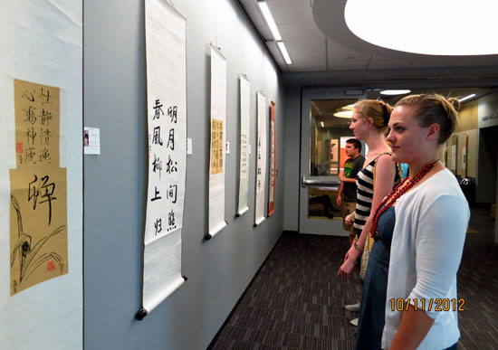 美国大学生书法展吸引校园目光