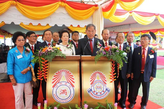 泰国第一任旅游和体育部部长乃颂他耶•坤本、泰国文化部部长素卡蒙•坤本、泰国春武里府府尹乃空讪•亿甲猜、泰国教育部民校教育委员会秘书长参威•塔素攀、泰国第二部检察厅厅长乃蓬塞•贴拍蓬素旺、泰国中华总商会主席吴宏丰、泰国华文民校协会主席梁冰、泰国华文教师公会代表以及泰国明联辖下各友坛主席和泰国华文民校主席校董校长、孔子学院和课堂负责人等一千多嘉宾出席了本次庆典活动。