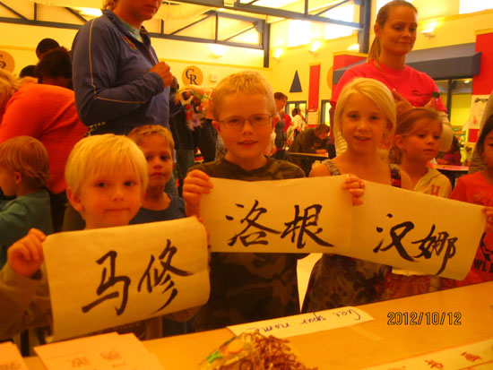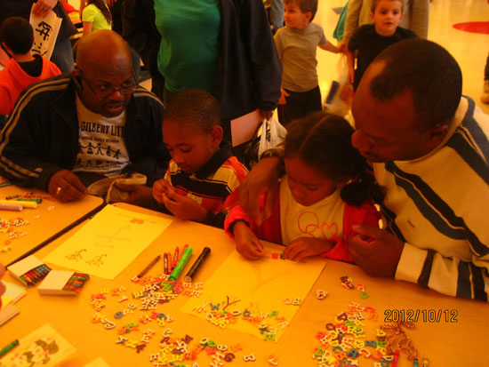 此次活动的主题是“读书识字”。在一个半小时的活动时间里,有将近600名学生和家长来到会场,他们通过游戏的方式学习认读和拼写。孔子学院为当天的活动准备了一系列体现汉语“听、说、读、写”技巧和魅力的小节目,受到了学生和家长的喜爱,孔院的展台也成为当天活动最受欢迎的展台之一。围绕“读书识字”这个主题,我院精心准备了“书法写汉语名字”、“彩绘识字”、“父母爱心卡”、“读中文书”四个小环节。