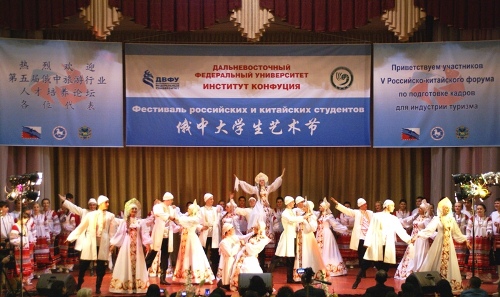 2012年10月15日,在远东联邦大学礼堂里成功地举办了第五届俄中大学生艺术节,牡丹江师范学院音乐舞蹈学院、远东联邦大学艺术团、远东国立渔业技术大学、海事大学等十余个学校的学生参加了演出。