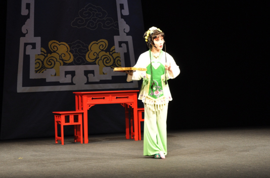 随着舞台大幕的拉开,包含着浓浓的中国味的锣鼓声,演员们踩着拍子,走上台前,灯光射在他们五颜六色的丝绣和头饰上,激起一片金碧辉煌的彩霞。观众也不知不觉地随着剧情的发展,时而展颜欢笑,时而蹙眉哀思,他们看得入了神,情绪和舞台上女主角的表演交融在一起,并在最后达到了高潮。演员一次次地上来谢幕,观众都不约而同地从座位上站起来,掌声雷动,经久不息。