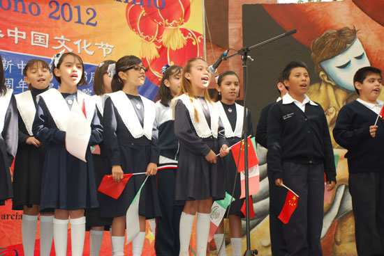 接着,是与墨城孔院合作的多所周边中小学校的汉语学生用汉语表演的节目,他们或演唱中国歌曲,或讲述汉字故事,只见来自Vigotski学校的几个幼儿园小学生在台上唱《两只老虎》,一会儿指指眼睛,一会儿扭扭屁股,一会儿一本正经地装着小老虎在跑步,让众人笑得合不拢嘴。来自CEAM学校的三个胖乎乎的小男孩才学了几个月的汉语,就可以把《流星雨》唱的非常流畅,还煞有介事的与观众握手,俨然把自己当成了歌星。还有来自SUIZO学校的学生进行的有趣的汉字表演,他们利用象形、会意等造字原理向观众阐释汉字的丰富含义。他们的这些表演让观众觉得如天书的汉语学习起来原来是这么形象和有趣。