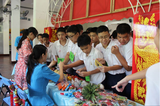 下午的“快乐汉语购”将活动推向了高潮。学生们兴奋地拿着赚来的“钱”,一字一句的向老师“买东西”。“苹果,一个,多少钱?二十块吗?太贵了,便宜一点儿。”2班的张志轩同学认真地用中文跟老师“讨价还价”,最终,他用“十块钱”买到了一个苹果。拿着奖品和自己“买”到的物品,学生们的喜悦充满了整个会场,这些欢声笑语更是吸引了学校其他的老师和学生,大家纷纷加入到了现场的汉语活动中来。