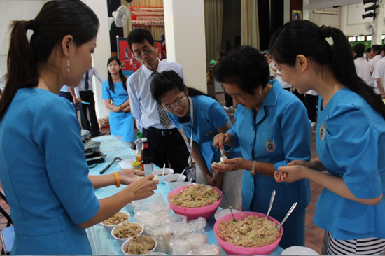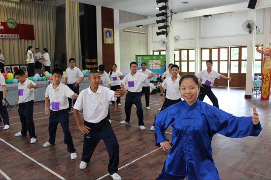 开幕式上,吉拉达学校校长THANPUYING ANGKAB PUNYASHTHITI为本次文化营点燃了祈福的蜡烛,并在开幕式上致辞,她说:“中国文化的博大精深,以及中国的不断进步和发展,都值得我们去了解。”上午,中国文化营共开展了六个项目,分别是太极拳、象棋、快板、民族服装秀、包饺子以及京剧。学生们分成了六个小组参与活动。这边,同学们随着悠扬的音乐缓缓打起了太极拳;那边,原本活泼好动的学生们两两一组的进行着象棋博弈。在会场的舞台下方,参与民族服装秀的学生们在老师的指导下了解中国的多民族文化,并穿上民族服装在精心布置的“T台”上闪亮登场;舞台上方,学习京剧的同学们兴致勃勃的随着老师水袖飞舞,引吭高唱。再包上几个饺子,说上几段快板儿,整个会场就犹如一个“小中国”。每个项目参加之后,同学们都会或多或少的得到课堂老师制作的“人民币”作为鼓励。这个上午,收获快乐,更收获知识。