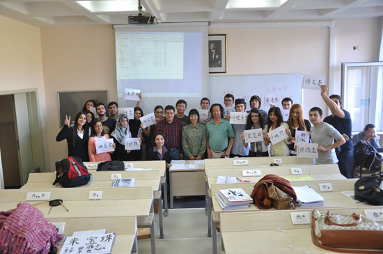 10月20日,上海大学土耳其研究中心主任郭长刚教授,土耳其著名汉学家Bülent Okay 教授等 “二十一世纪的中国与土耳其”国际高层论坛的与会代表们在海峡大学孔子学院中方院长苗福光教授的带领下到孔院参观“徐步群书画展”。徐步群先生当场给各位代表做书法展示,并且题词赠予郭长刚教授和Bülent Okay 教授。