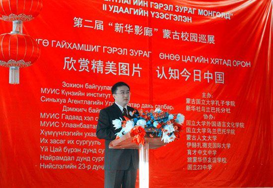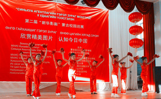 2012年11月3日,第二届“新华影廊”蒙古校园巡展开幕式在蒙古国立大学大礼堂拉开帷幕。