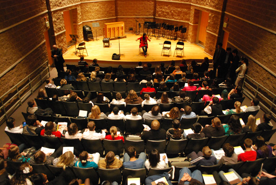孔子学院音乐节不仅仅是举办音乐会,而且还帮助美国中学生了解、学习演奏中国乐器。18日全天,由国内来的学生和专业音乐家辅导美国高中生,向他们介绍中国乐器的特点和演奏技巧,并集中排练将在晚上演奏的曲目。中央音乐学院的师生介绍并辅导扬琴,上海音乐学院的师生指导二胡、笛子、古筝等,人大西山中学的同学则介绍并指导古琴,而瓦大孔子学院“美风”中国民乐团的美国学生也参与指导了笙、葫芦丝等乐器。