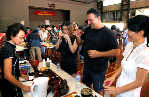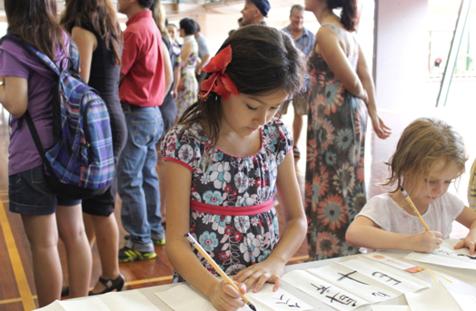 2012年11月3日上午11点,以鲜明特征的中国书法展、中国剪纸展、学用筷子、茶艺表演和学包饺子很快以其异域风采吸引了观众,与此同时体验汉语教学也在悄悄地让当地汉语初学者领略中国文化的神韵。