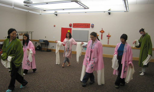 涂教授从发展脉络、艺术特征、审美特色、表演艺术等几个方面介绍了中国京剧。随后,她亲自演示了摔袖的基本功,表演了京剧“蔡文姬”片段,弹奏了古琴,吟唱了昆剧“牡丹亭”,看得观众目瞪口呆。之后,她给观众化了脸谱,穿上京剧服,教他们走台步、摔水袖...观众象着了迷似的,一板一眼地学得特别认真。有一个女大学生,对摔水袖特别感兴趣,旁若无人地在那里不断练习摔袖,一直练到累得爬不起来。