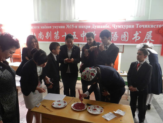 2010年11月10日,塔吉克斯坦国立民族大学孔子学院下半年新增设的汉语教学点——塔吉克斯坦杜尚别第十五中学迎来了自己的第一场汉语活动,当天上午10点30分,由孔子学院教师组织策划的汉语图书展如期举办。