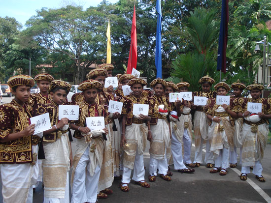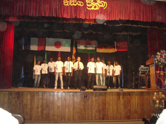 11月6日斯里兰卡凯拉尼亚大学孔子学院院长侯万春一行应邀参加了Bandaranyake College男子中学举办的“语言节”活动。Bandaranyake College男子中学校长,老师,学习汉语,法语,印度语,日语,德语的学生,日本等驻斯里兰卡使馆官员,周边其他中学学习外语的师生代表等近千人参加了“语言节”活动。学习外语的学生分别用各自外语表演了精彩节目:唱歌,跳舞,戏剧,小品等。侯万春院长受邀与该校汉语班学生同台演唱了汉语歌曲——朋友,赢得了全场热烈的掌声。