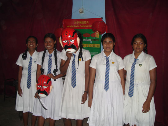 当天,凯拉尼亚大学孔子学院在Bandaranyake College男子中学的大礼堂还举办了汉语文化书展,其中展出了中国国旗,中国地图,中国结,灯笼,脸谱,中国印象图片,孔子学院简介,汉语有声教学挂图,学习卡片,汉语电子图书, 中小学汉语教材和中国文化书籍, 凯拉尼亚大学孔子学院汉语教学和中国文化活动图片。凯大孔子学院教师们向来访者介绍了孔子学院汉语教学课程和中国文化活动项目,教授来访者汉语词语和日常汉语,给学生取汉语名字,教学生体验使用汉语有声教学挂图和汉语电子图书。孔子学院的宣传活动及该校孔子学院汉语班学生的表演, 极大地激发了该校和周围其他学校师生学习汉语,了解中国文化的热情和兴趣。据悉,凯拉尼亚大学孔子学院今年8月应邀在该校开始教授汉语。