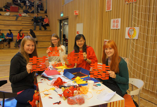挪威中学生剪双喜字