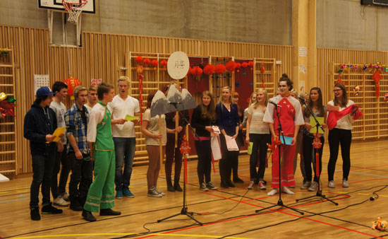 3小时的文化体验结束后,文艺演出把“中国文化日”的气氛推上了最高潮。来自United World College 的学生为小朋友和家长带来了一段可爱温馨的《爱我你就抱抱我》的歌舞表演。挪威赛区汉语桥获奖选手 Martin Rydving 唱出了一曲欢快的《对面的女孩看过来》,当天恰逢其生日,中文老师特意为他准备了生日蛋糕,让他惊喜万分。BHG汉语新生带来的《康定情歌》和UWC学生表演的短剧《梁山伯与祝英台》,从服饰到表演不断给观众一个又一个惊喜。卑尔根学联、大学汉语学生、孔院老师也献上了精彩的节目,在场所有人都感受到了浓浓的中华情,中国文化的魅力大放光彩。