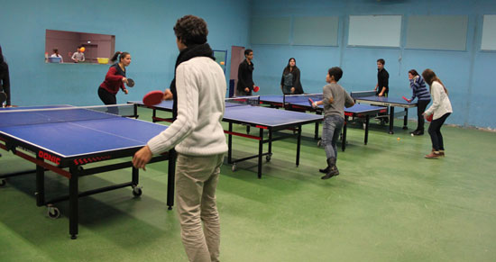 孔子学院学生练习打乒乓球