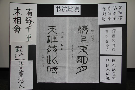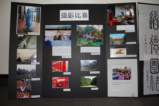 此次大赛分为书法、写作、摄影及汉语节目表演四个项目。书法比赛的参赛者最为踊跃,共提交了四十余幅作品,令几位评委眼花缭乱,难以取舍。最终,一位中文名字叫王嘉美的小学生以篆书写出的“海上生明月,天涯共此时”征服了评委,获得一等奖。一位中文名字叫古珊娜的中学生生动地描述了陪老师去看中医的经历,观察细致,文笔流畅,拔得写作比赛头筹。本届比赛新增设了摄影项目,要求参赛者提交内容与中国或汉语学习有关的照片,佐治亚州立大学学生简森. 贾维斯以一张表现两位老人在路边长椅上悠闲地拉着二胡的作品,勾勒出京城百姓的日常生活场景,创意新颖、构图完美、技巧精湛,在摄影比赛中蟾宫折桂。