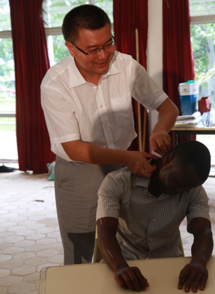 在中医展示中,中国驻布隆迪医疗队的针灸大师严医生为大家演示针灸的神奇。