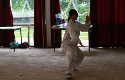 随着会场气氛的高涨,卢旺达志愿者李小燕在欢呼声中出场了,她为大家带来的是四十二式太极拳,正所谓名师出高徒,李小燕的师父曾荣获全国太极拳大赛一等奖,她的表演自然流畅,如行云流水,看得在座的学生个个跃跃欲试,想跟着李师父学几招。