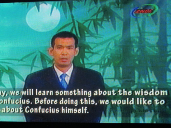 11月16日,期待已久的日子,17:30分,可喜可贺的时刻,赞比亚大学孔子学院在与赞比亚国家电视台(ZNBC)合作录制的电视汉语教学和文化节目正式开播了!《跟我学汉语》、《孔子智慧》、《太极教学》各个环节精彩纷呈,受到赞比亚各界人士的热烈欢迎。赞比亚第一次有了电视汉语和文化传播节目。