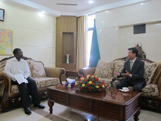 赞比亚国家电视台记者就电视汉语和文化节目在赞比亚传播的意义采访驻赞大使周欲晓