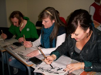 为确保此次活动的顺利进行,孔子学院的中方教师和志愿者教师做了大量的精心准备。体验活动包括:中国国情介绍,简单汉语学习,尝试毛笔写字,玩转数字游戏,汉字拼图游戏和取一个中文名字等6部分,旨在让爱尔兰中学生在最短的时间内切实感受汉语的独特魅力和中国文化的博大精深。在两个小时的活动时间里,学生们了解了中国的基本概况,学会了数字和简单的问候语,体验了写毛笔字的乐趣,每个学生还得到了一个他们喜爱的中国名字。活动结束后,许多学生还意犹未尽。他们拿着写有自已中文名字的书法,用刚学会的汉语“我爱中国、谢谢你、再见”与孔子学院老师和志愿者告别。整个活动组织有序,内容丰富多彩,课堂气氛活跃,受到了参加体验活动中学生的喜爱。