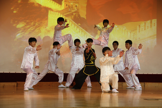 随后,与会嘉宾一同观看了泰成中高等学校孔子课堂中国语教育院全体师生为庆典精心准备的演出。演出节目精彩纷呈,志愿者教师与学生一起为大家献上精彩的中国武术,博得观众的阵阵掌声。志愿者教师们与学生共同演奏了中国传统乐器葫芦丝演经典曲目《月光下的凤尾竹》,中国传统旗袍秀吸引了所有观众的眼球,传统的手绢舞让韩国观众感受到了中国传统舞蹈的魅力,学生们自编自演的中文音乐剧,展示了中国语教育院的教学成果。演出现场掌声不断,与会嘉宾纷纷表示:通过孔子课堂中国语教育院让各位韩国嘉宾看到了“韩国中的中国”,非常难得!演出结束后,各位嘉宾上台与所有演出人员握手并合影留念。