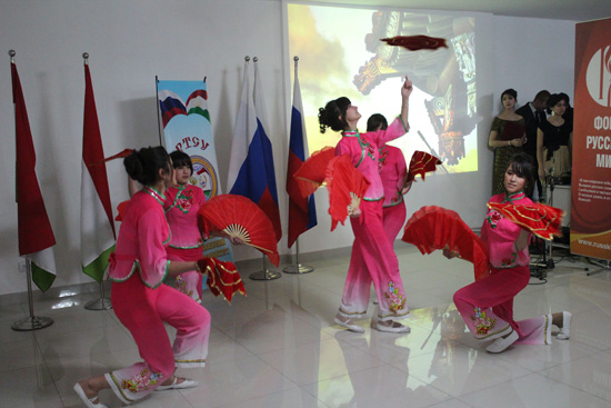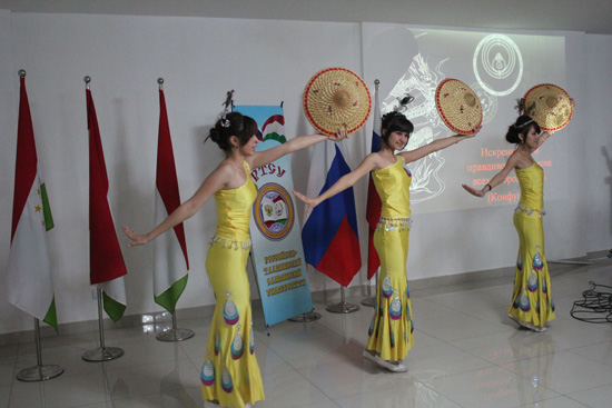 2012年11月23日,塔吉克斯坦俄罗斯-塔吉克斯拉夫大学举办一年一度的国际文化节活动,塔吉克斯坦国立民族大学孔子学院应邀参加,并在文化节上展示了精彩的中国歌舞表演及正宗的中华美食,赢得到场观众的欢迎与喝彩。