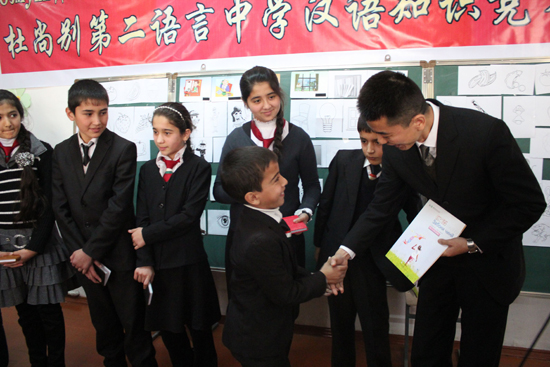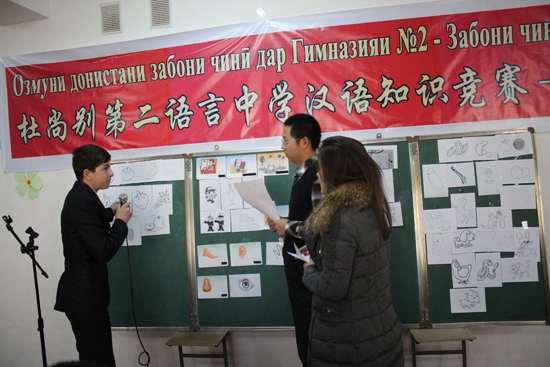 语言源于生活,语言的学习自然也应当融入生活。 2012年11月23日上午11点,一场以“让汉语走进生活”为主题的汉语知识竞赛在塔吉克斯坦国立民族大学孔子学院下设教学点杜尚别市第二语言中学成功举行。