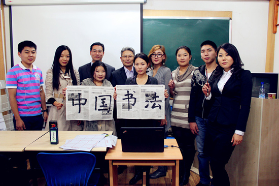 为开拓蒙古国学生的视野,增进他们对中华优秀传统文化的了解,2012年秋季学期,蒙古孔院举办了中华文化体验系列讲座,内容涵盖太极拳、中华美食、毛笔书法、中国剪纸与结编、硬笔书法和京剧等六大方面。