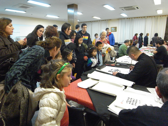 11月29日晚,在瓦伦西亚大学礼堂,为当地少年儿童及其家长举办了一场“我的千年机器人朋友”专场儿童舞台剧演出,并在节目后进行了幸运彩球抽奖活动。之后,孔院师生还开设专场,展示了茶艺、剪纸、书法等中国特色文化,同时还进行了学习打麻将、下象棋等互动活动。有不少参加者现场完成了自己生平的第一幅书法或剪纸作品。