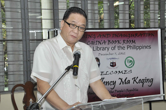 菲律宾国家图书馆馆长安东尼奥·桑托斯在致辞中表示,在馆内开辟一间中国书屋,可为有意愿赴中国工作、从事中国方面研究的学术人员和有兴趣了解汉语及中国文化的菲律宾民众提供很好的信息。