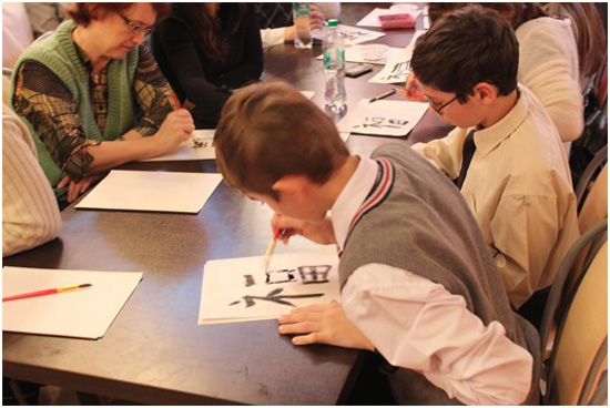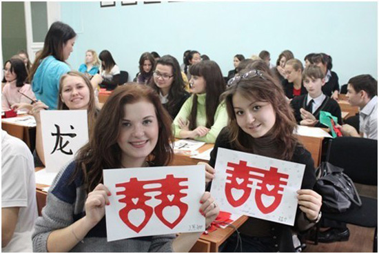 11月14日,喀山联邦大学孔院40多名师生来到距离喀山市350公里的伊拉不加分校为分校的学生教授了中国书法、剪纸等文化课程,近150名学生参与其中。中国结、剪纸和书法深深地吸引了当地的学生。本次活动得到了伊拉不加分校师生的广泛好评。