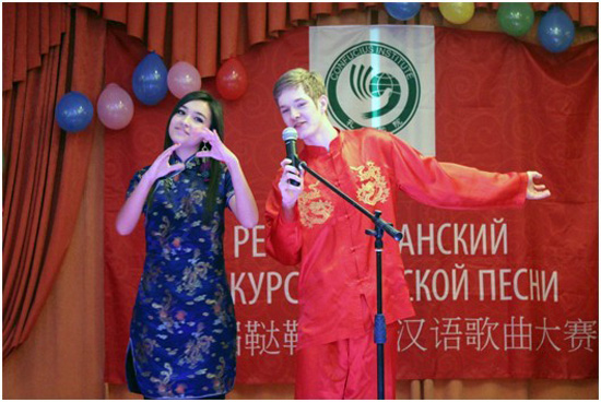 10月26日,喀山联邦大学孔子学院切尔内分校在212孔子学院教室举行了文化交流活动,近50名学生参加了活动。学生安德烈借助图片和ppt展示了当代中国的风貌,并以演讲的方式谈论他眼中的中国。几位身着中国传统服装的姑娘在《青花瓷》的伴奏下跳起了扇子舞,博得大家阵阵喝彩。随后开展的使用筷子游戏把活动推向了高潮。“中国,祝福你,你永远在我心里,中国,祝福你,不用千言和万语”一曲大三学生合唱的激动人心的《大中国》为本次活动画上了圆满的句号。