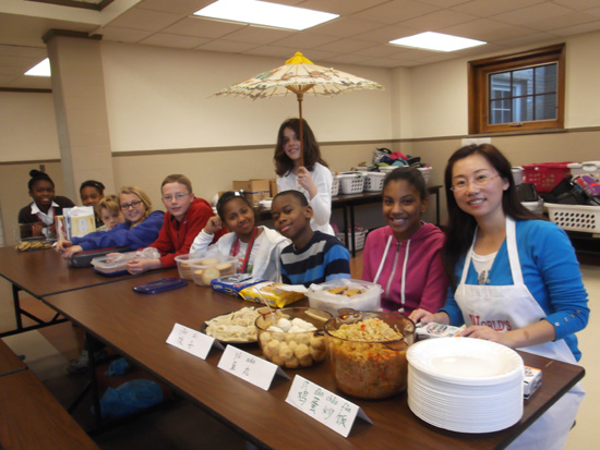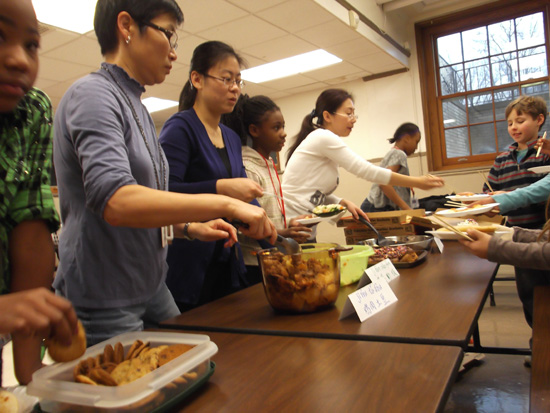 为了帮助学生更直观地了解中西饮食文化的差异,同时能将中文课堂上学到的交际用语更好地应用于真实语境中,Woodbury小学的三位汉语教师组织学生们开展了“中西厨艺大比拼暨中西美食节”活动。学生们在家长的协助下制作了地道的美国菜和西式糕点及小吃,三名汉语教师也各自亮出了自己的拿手菜。在为期一周的美食节中, Woodbury小学的八百多名学生每人都品尝到了一份色香味俱佳的中国各式菜品和学生们自制的各色美式糕点小吃。