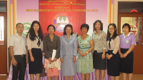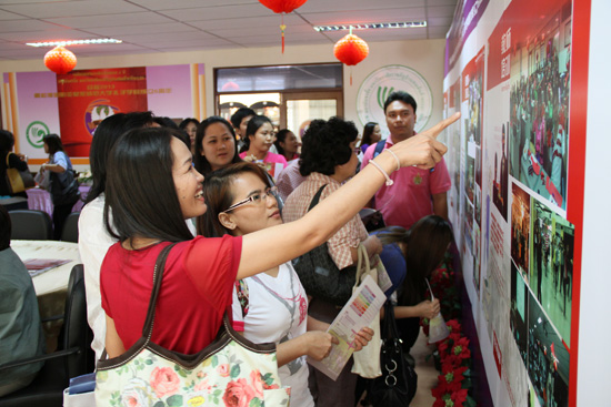 民教委赖芝华老师参观图片展并与曼松德孔院教师合影