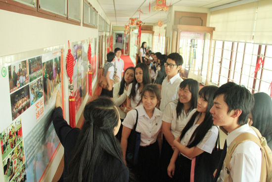 1月7日,曼松德昭帕亚皇家师范大学孔子学院迎来又一批参观者——来自北标府的景溪景德公学( Jintue Kaeng-khoi School)师生一行,至此,前来参观曼松德孔院成立六周年图片展的人数已突破600人,共30团次。图片展于2012年12月26日开展,如今已至中期,曼松德孔院先后接待了来自泰国基础教育委员会、民校教育委员会、曼谷市教育局的官员、曼松德大学领导和师生以及社会各界知名人士、学者、公务员、大中小学师生和兄弟孔院、课堂的师生,曼松德大学及其附属中学的学生也多次组织参观。仅1月5日一天,前来参观人数就达200人次,他们分别来自曼谷市的近200所中小学,其中有长期参加曼松德孔院培训的本土教师,也有慕名而来的参观者。自开展至今,参观图片展的有单位也有个人,有的是曼松德孔院的老朋友和长期合作伙伴,也有不少是第一次参加曼松德孔院的活动,参观之后,很多单位或学校对曼松德孔院的教学工作和文化活动等方面产生了浓厚兴趣。据粗略统计,参观者96%以上来自泰国本土,图片展为他们打开了了解孔子学院、了解中国的窗口。目前,已有民教委、基教委、教育局官员和相关学校与曼松德孔院探讨2013年关于教学督导、教师培训、文化活动、HSK和YCT考试、赴华进修等方面的合作计划,图片展在促进曼松德孔院各项工作与对外交流合作上起到了积极作用。