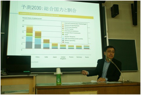 杨教授的精彩报告博得了在场早稻田大学日本学生以及各国留学生的热烈反响。早大学生分别用汉语、日语和英语进行了提问。杨教授也分别用中日英三语进行回答。杨教授还语重心长地向在座的年轻学生说希望日本年轻人多结交亚洲朋友,为推动亚洲各国之间的友好做出努力。