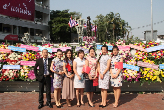 在校庆典礼上,曼松德大学校董会主席Prof. Dr. Payong Jutha发表讲话。Payong主席向在场观众介绍了曼松德大学的创始人——辅佐了五代国王的大臣曼松德昭帕亚,曼松德一生尽心辅佐国王,屡立重大功勋,并且是拉玛五世皇时期的辅政第一要员。之后,主席激励曼松德大学的学生作为曼松德的弟子,要向曼松德学习。曼松德大学新任校长彭来喜(Assoc .Prof .Dr . Ponlasit Noochoochai)详细介绍了曼松德在管理、军事、外交和国际事务、技术、宗教、文学和艺术方面所作出的卓越贡献。接下来,各国使馆代表、校内各个学院代表依次向曼松德像敬献花圈,曼松德孔院院长温象羽代表孔子学院敬献了花圈。