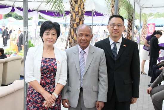 温象羽院长和中国大使馆一等秘书邱宁与曼松德大学彭来喜校长合影