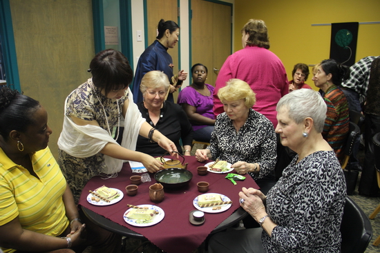 众所周知,茶是世界四大饮料之一。中国是茶的故乡,中国人饮茶已有上千年的历史。此次茶道体验活动的举办,旨在让美国人更好地了解和体验中国悠久的茶文化。活动开始,主持人通过视频让大家介绍了中国茶的分类、茶具和泡茶、品茶的基本步骤。接下来由孔子学院的教师和志愿者,每人负责一桌,让参与活动的客人亲身体验茶道并向他们进一步讲解茶道的精神和意蕴。最后,在一边喝茶,一边品尝特色中式点心的愉快气氛中结束本次体验活动。