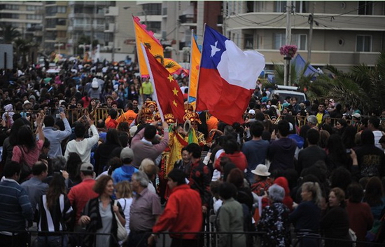 当地时间2013年1月20日,在智利美丽的旅游之都——维尼德尔玛市滨海大道举行了盛大的中国农历蛇年庆祝活动。本次活动由智利圣托马斯大学孔子学院主办、中国驻智利大使馆文化处与维尼德尔玛市市政府协办。中国驻智利杨万明大使、使馆文化处李保章参赞、维尼德尔玛市市长弗吉尼亚•雷因纳多女士、圣托马斯大学维尼德尔玛分校校长何塞•温博先生等出席活动并致辞。本次庆祝活动主办方还邀请了智利中华振兴鼓队、舞龙舞狮队、凤凰武术队和维尼德尔玛中国文化中心等前来助兴。活动当天,各演出团队进行了中国鼓、舞龙舞狮、中国太极和武术等众多颇具中国特色的精彩表演。除此之外,为了丰富庆祝活动的形式,进一步推广中国文化,圣托马斯大学孔子学院还专门邀请了中国南京京剧团在新春佳节到来之际不远万里来到智利,将中国国粹——京剧带给当地民众和侨胞。这一系列庆祝中国新年的演出活动在当地引起了极大地反响,受到了当地民众的热烈欢迎。每场演出活动现场人头攒动、热闹非凡,维尼德尔玛及周边城市的各界人士、华人华侨、当地民众以及外国游客等三千余名观众观看了庆祝活动。