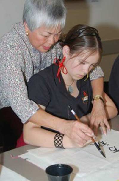 这60多名学生在Mesa Academy 都学过一到两年的中文外语课程、中文口语和有一定基础的书写水平。但绝大多数人还是第一次学习正确的握笔方法,第一次学习毛笔笔画的书写和“永字八法”。孔子学院为他们准备了印有他们中文名字的宣纸,学生们都兴致勃勃地练习自己的中文名字。