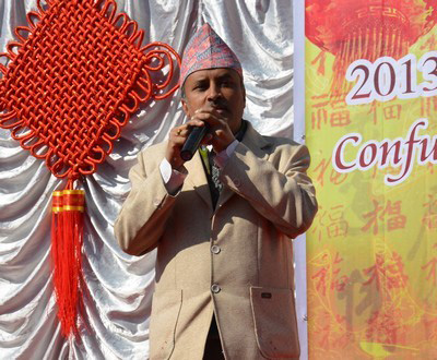 尼泊尔总理府首席秘书里拉•马尼•鲍德尔和尼中文化教育协会主席哈里士•昌德拉•沙阿致辞表示,中尼两国不仅地理相邻,文化也有融通特色。中国的春节就如尼泊尔的德赛节一样,是个喜庆、欢乐的节日。中文在尼泊尔的推广,明显有助于尼泊尔人民更多了解真实的中国。中尼经贸和旅游等行业交流合作的扩大,将为尼经济社会发展注入活力,学习中文的必要性也将随之上升。孔子学院为促进两国人文交流做了大量工作,尼方将继续为推广中文教学做出积极努力。