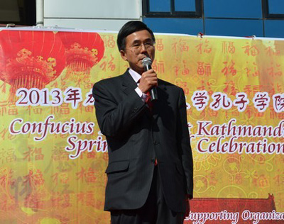 加德满都大学孔子学院中方院长张树彬致欢迎辞,对各位领导和朋友的光临表示真挚的感谢,并代表全体中方教师和汉语教师志愿者感谢各位在过去一年多来对加德满都孔子学院各项工作的关心与支持。在蛇年春节即将到来之际向诸位拜年,恭祝大家新年快乐,万事如意。加德满都大学副校长巴特曼•杜拉达尔教授致辞感谢孔子学院各位老师在推广汉语教学和文化交流方面所做出的努力和付出的辛勤汗水。