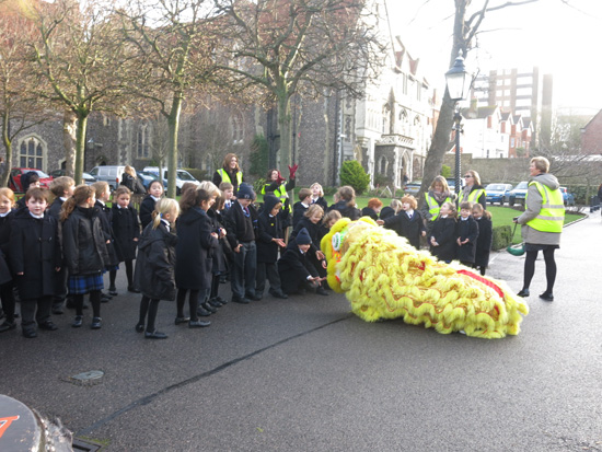 汉办老师和英国舞狮队同台演出,共庆中国新年