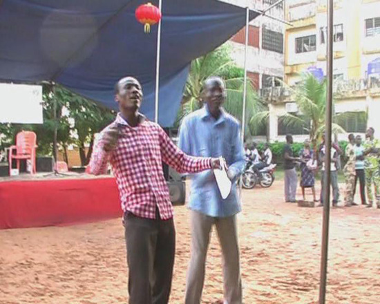 阿波美卡拉维大学孔子学院得到“网络春晚”通知之后,积极策划方案,认真组织节目,并于去年12月把视频节目上报到孔子学院总部。经总部编辑和筛选,目前,阿波美卡拉维大学孔子学院的9个文艺节目已经在“网络春晚”的舞台上登台亮相,分别是合唱《中国站起来》、男声二重唱《外婆的澎湖湾》、独唱《老男孩》、男女对唱《月亮代表我的心》、小品《老板的故事》、讲故事《铁杵磨成针》以及3个贝宁民族歌舞节目。参加表演的学生大部分在孔子学院学习汉语,有些学生已经学了两年汉语,有些学生才学了几个月,但是,他们都热爱中国文化,许多学生都希望到中国去学习。